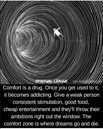 Quote: Comfort is a drug. Once you get use to it, it becomes….