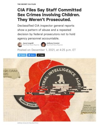 Though most of these cases were referred to US attorneys for prosecution, only one of the individuals was ever charged with a crime. Prosecutors sent the rest of the cases back to the CIA to handle internally, meaning few faced any consequences beyond the possible loss of their jobs and security clearances. That marks a striking deviation from how sex crimes involving children have been handled at other federal agencies such as the Department of Homeland Security and the Drug Enforcement Agency. CIA insiders say the agency resists prosecution of its staff for fear the cases will reveal state secrets.