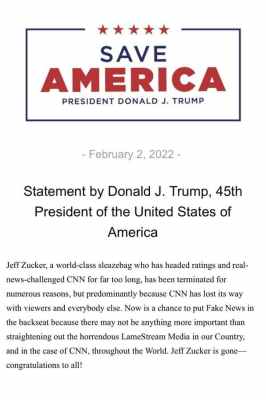 The former president weighed in on Jeff Zucker’s shock resignation from the network today calling him a “world-class sleazebag.”