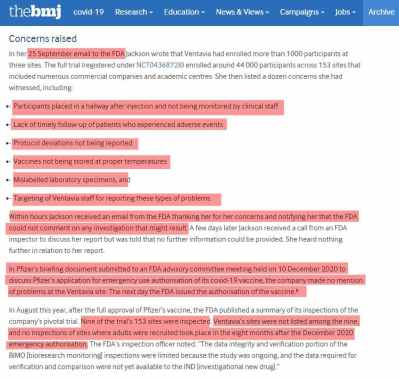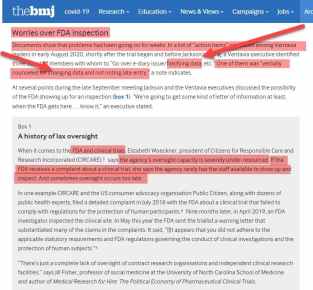 Worries about falsifying data, and worries about FDA inspections in the covid 19 vaccine trials.