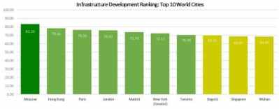 Moscow was given top grades in term of Infrastructure development and overall quality of life.